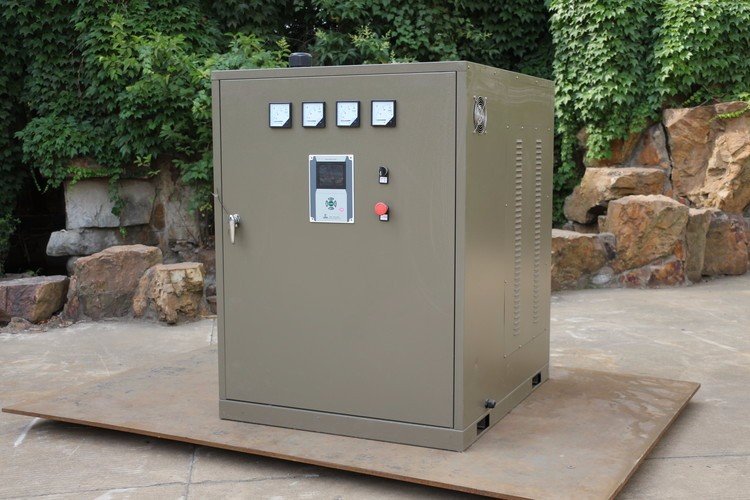 6、控制柜內安全保護功能具備超溫、過載、短路、漏電、缺水等基本運行保護功能。若出現異常情況,機組應發出聲光報警,同時自動分組切除加熱裝置,直至全部切除停機。控制面板為液晶顯示。